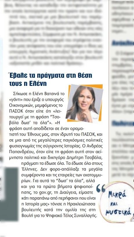 “Έβαλε τα πράγματα στη θέση τους η Ελένη”