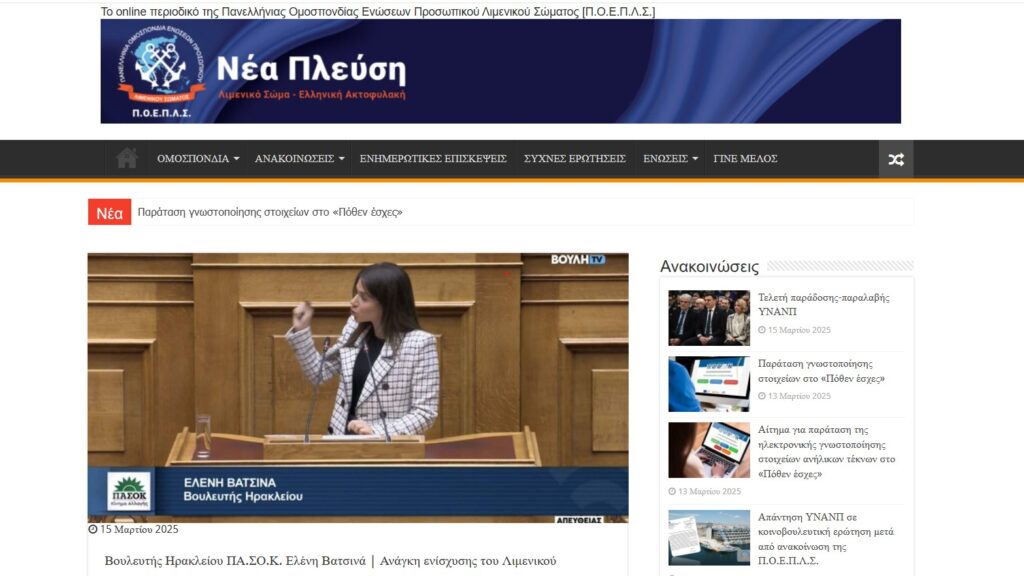 Π.Ο.Ε.Π.Λ.Σ. Το online περιοδικό της Πανελλήνιας Ομοσπονδίας Ενώσεων Προσωπικού Λιμενικού Σώματος (15.03.2025)