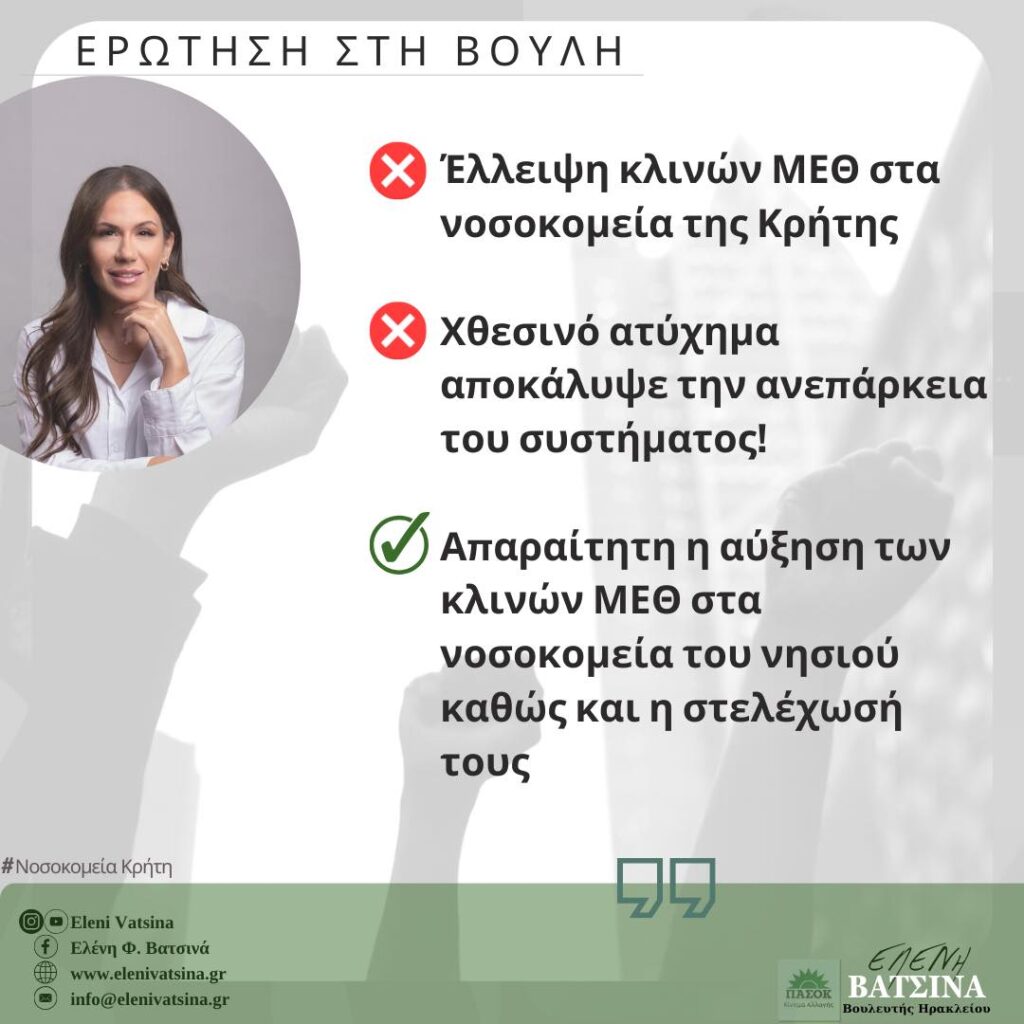 Ερώτηση στη Βουλή για τα Νοσοκομεία Κρήτης