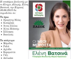 Το «ραντεβού» της Ελένης Βατσινά με τους πολίτες έχει οριστεί για τις 20.30 το βράδυ της Πέμπτης 04.07.2019, στην αίθουσα «Φουγάρο» του κτιριακού συγκροτήματος «Αθηνά».