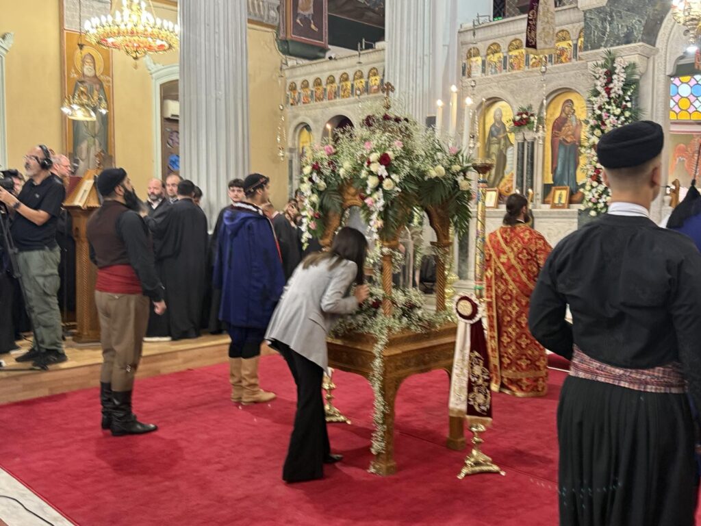 Η κ.Βατσινά παρακολούθησε την πανηγυρική Θεία Λειτουργία στον Καθεδρικό Ναό του Αγίου Μηνά και έλαβε μέρος στην λιτανεία στους κεντρικούς δρόμους της πόλης.