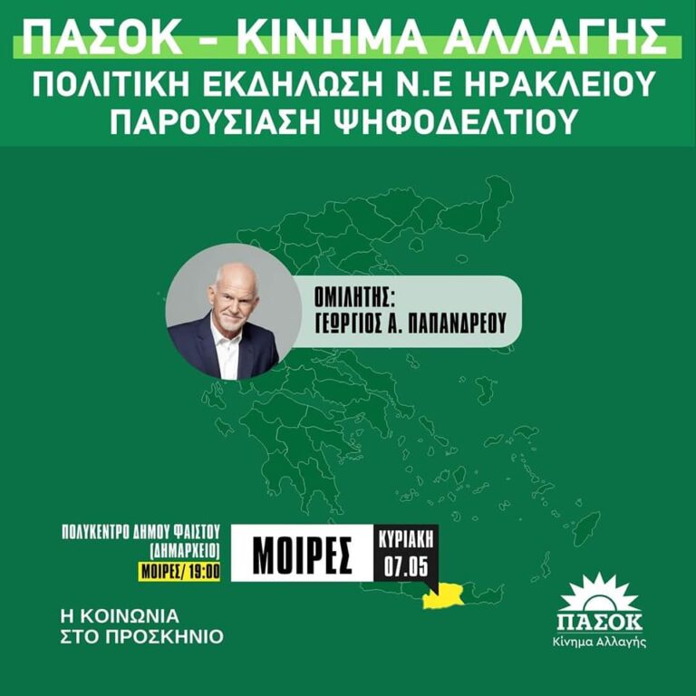 για την παρουσίαση του ψηφοδελτίου της Περιφερειακής Ενότητας Ηρακλείου, του ΠΑΣΟΚ - Κινήματος Αλλαγής.