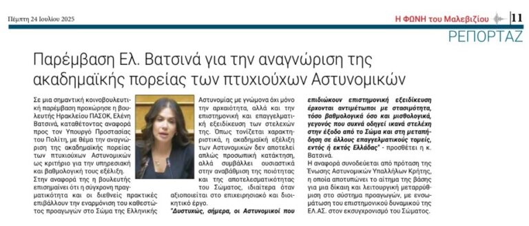 neakriti.gr & KPHTH TV (01.07.2025) Διαβάστε εδώ το ρεπορτάζ της Γεωργίας Μακάκη Δείτε παρακάτω το ρεπορτάζ στο δελτίο ειδήσεων του KPHTH TV: