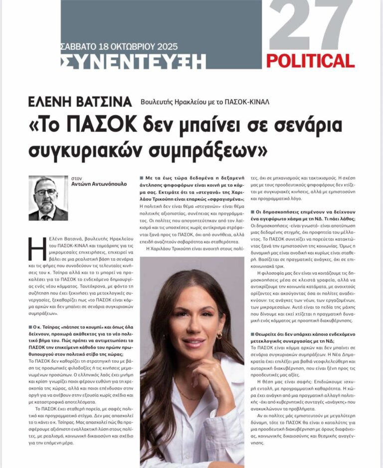 Συνέντευξη στην εφημερίδα “POLITICAL” (18.10.2025)